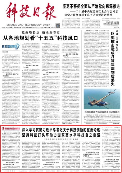 中国式现代化要靠科技现代化作支撑。党的二十届四中全会通过的《中共中央关于制定国民经济和社会发展第十五个五年规划的建议》(以下简称《建议》)将“加快高水平科技自立自强,引领发展新质生产力”作为战略任务进行专章部署,2025年中央经济工作会议把“坚持创新驱动,加紧培育壮大新动能”列入今年经济工作八项重点任务之一,充分体现了科技的战略先导地位和根本支撑作用。前不久,安徽省委召开十一届十一次全会,认真贯彻习近平总书记和党中央决策部署,对打造具有重要影响力的科技创新策源地作出系统安排。迈上“十五五”新征程,我们将深入贯彻党的二十届四中全会和习近平总书记考察安徽重要讲话精神,坚持科技打头阵,下好创新先手棋,推动科学新发现、技术新发明、产业新方向、体制新动能不断涌现,持续擦亮科技创新这张“金色名片”,奋力谱写中国式现代化安徽篇章。